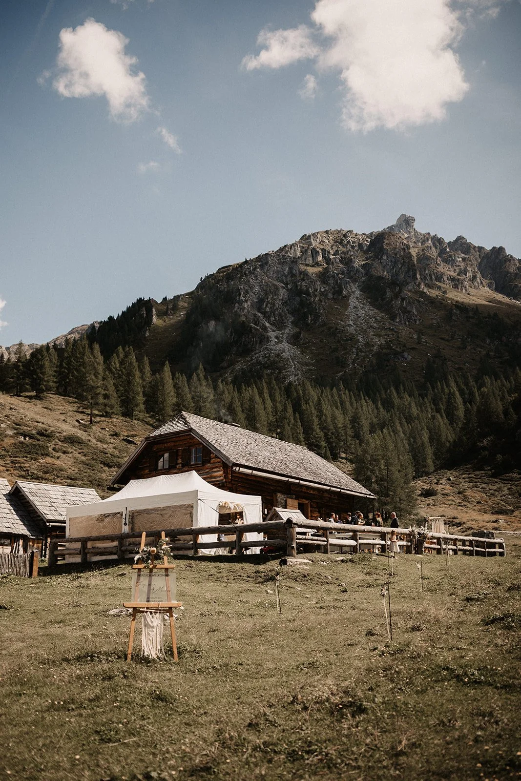 Die Ursprungalm eignet sich perfekt für kleine Hochzeitsgesellschaften. Ob eine gemütliche Feier im Inneren der Hütte oder eine Hochzeit im kleinen Kreis unter freiem Himmel – die Atmosphäre bleibt immer persönlich, warm und entspannt.